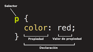 - Declaración: Una sola regla como color: red; especifica a cuál de las propiedades del elemento quieres dar estilo.